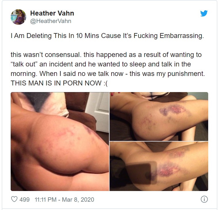 Son nom n’est pas méconnu dans le milieu du porno. Cependant, Heather, bien avant d’être illusoirement une « actrice pour film d’adulte » est avant tout une victime de ce milieu violent. Le 18 mars est sorti un article sur les violences qu’elle a subi de la part de son compagnon, un acteur dont le nom n’est pas inconnu, lui non plus, dans cette industrie : Tommy Wood.