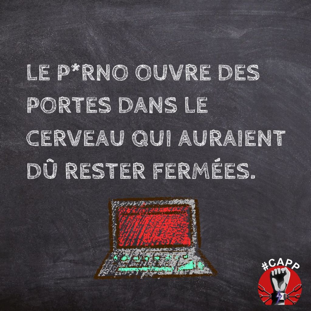 Surtout en ce qui concerne le rôle de la pornocriminalité dans la culture du viol, la manière dont celle-ci crée des violeurs, la manière dont elle crée les fantasmes de vioL et le passage à l’acte.